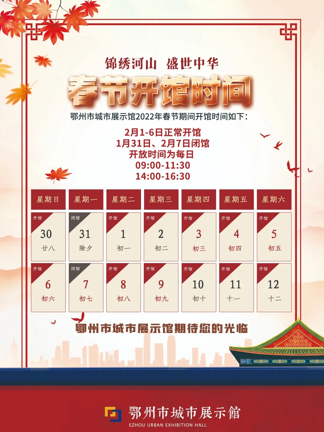鄂州市城市展示馆2022年春节期间开放时间公告