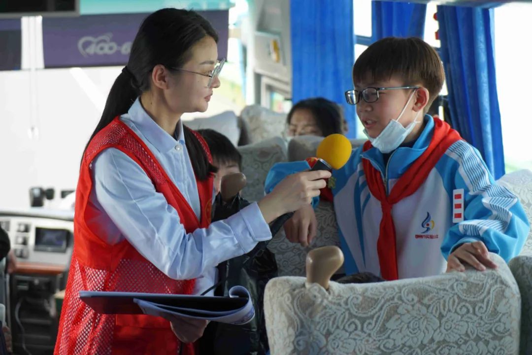 在去往目的地的路上,展示馆工作人员先给同学们讲述了关于自然资源的科普小知识,并通过“有奖问答”环节,加深了同学们对自然资源的初步了解。