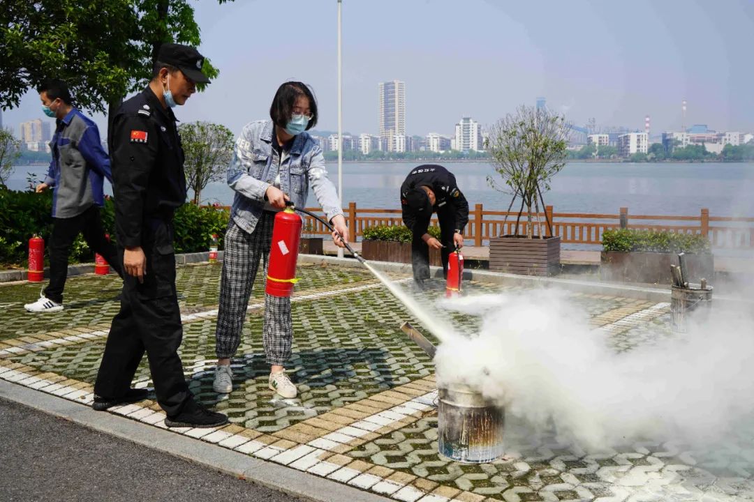 演练现场,安保队队长向大家详细地讲解了灭火器、消防水带等消防设备的使用方式,伴随着滚滚浓烟,工作人员在专业的指导下进行了灭火实战操练,整个消防应急演练在紧张的环境氛围中有条不紊的展开。