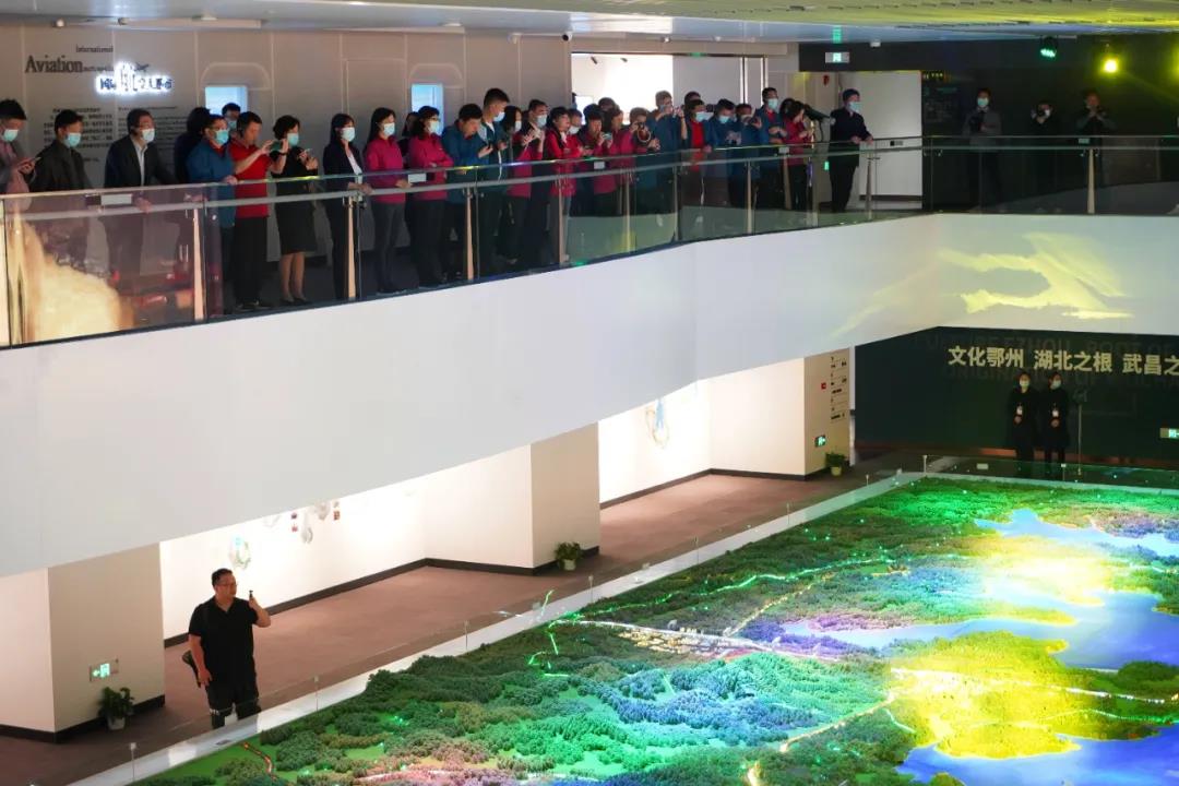 市城市展示馆的总规沙盘秀向代表团展现了鄂州全力以赴推动疫后重振和高质量发展的景象:花湖机场建设热火朝天,光谷科技创新大走廊鄂州段启动建设,武鄂同城发展全面加速,乡村振兴和生态保护共同推进,这片发展热土正迸发出勃勃生机。