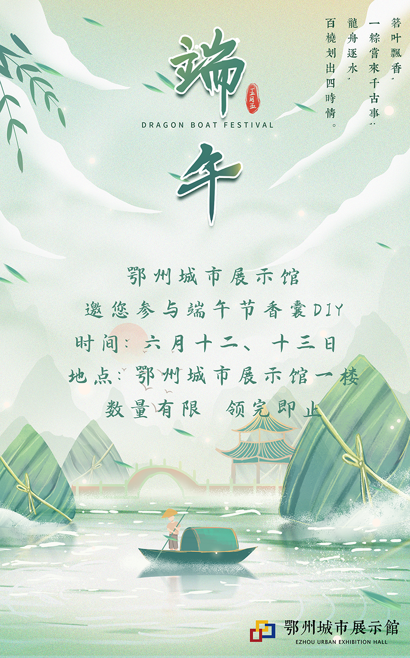 为了弘扬传统文化,对公众普及人文历史知识,鄂州市城市展示馆即将展开端午节香囊DIY活动。我们诚挚邀请广大市民朋友到馆参加活动,体验中华传统文化的魅力。