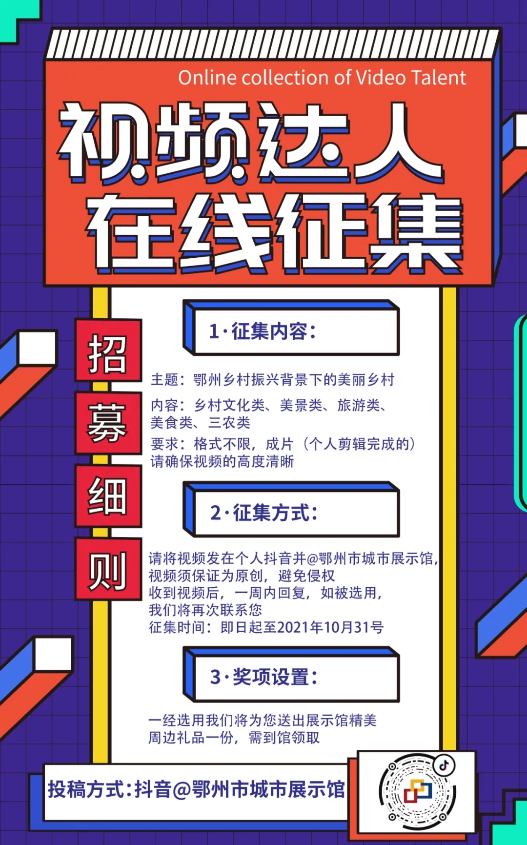鄂州市城市展示馆已从即日起开展“鄂州乡村振兴背景下的美丽乡村”视频征集活动。