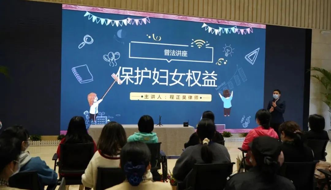 “保障妇女权益法律讲座”上,专业律师以《中华人民共和国反家庭暴力条例》、《中华人民共和国家庭教育促进法》等相关法律法规为切入点,联系生活实际,深入浅出地为大家作了精彩的普法宣讲,并鼓励广大妇女群众认真学法,正确运用法律武器,保障自身的合法权益。