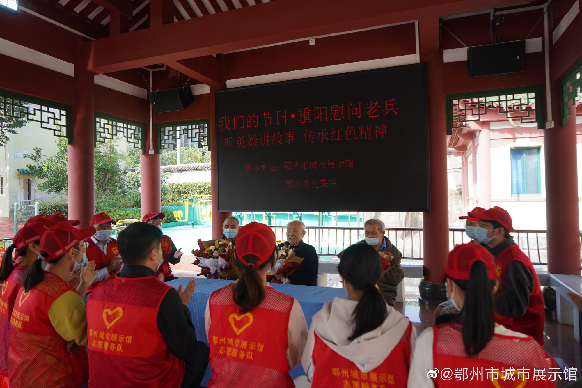 重阳节前夕,鄂州市城市展示馆的志愿者们到市光荣院慰问抗战老兵,向在抗日战争中浴血奋战的前辈们送去节日的祝福。