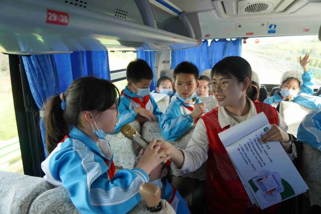 在去往目的地的路上,展示馆工作人员先给同学们讲述了关于自然资源的科普小知识,并通过“有奖问答”环节,加深了同学们对自然资源的初步了解。