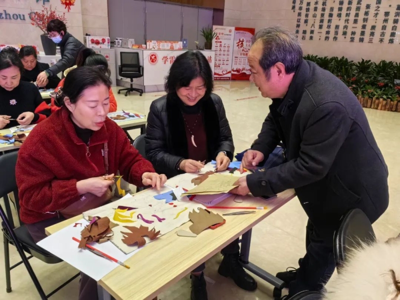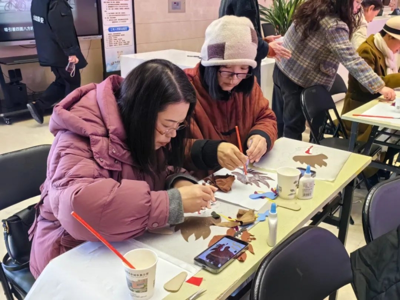 活动现场,工作人员给每一位女士分发了剪刀、胶水和形状颜色不一的布料,在李立志老师的指导下,她们对照参考图各自尽情创作。了解了制作过程后,大家纷纷动手制作布贴画,剪布、刷胶、贴画,按压固定……每一步的操作,都细致认真,力求完美。