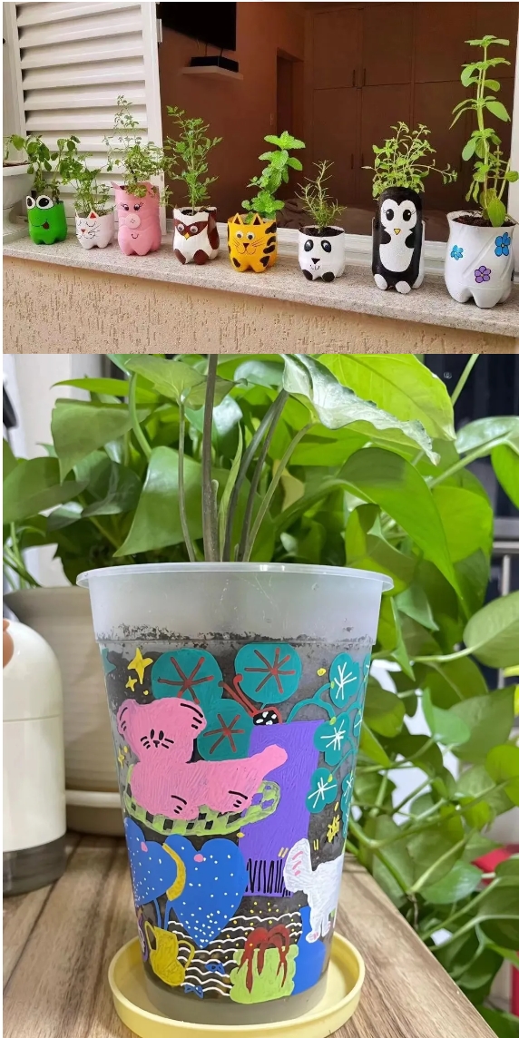 2.利用塑料瓶制作花盆。(注:参加活动的朋友需自带已裁剪好的塑料废弃品,例如喝完水的塑料瓶等)